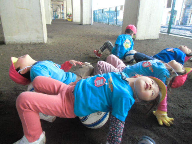 ボールの上に座る・お腹で乗るが出来るようになったみんな。