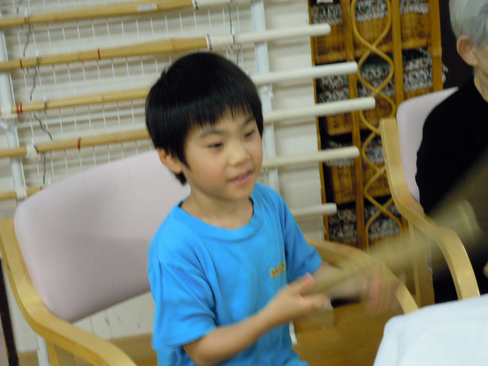 太鼓を使って、おじいちゃんおばあちゃんと交流しました。